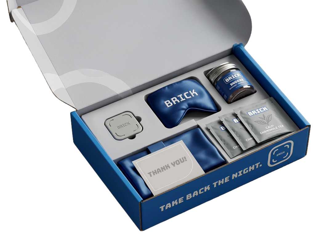 Order from BRICK on March 13th, World Sleep Day, and receive a surprise PR package with your order! In addition to your Brick, the package would include an eye mask, silk pillow case, chamomile tea, and melatonin.
